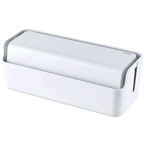 モダンホワイト/1) 10個口タップ収納/スマホスタンド付/EKC-BOX004WH・Color:ホワイトSize:1) 10個口タップ収納/スマホスタンド付・パッケージ個数:1・デスクの上のケーブルや端末をスッキリ整理できる、大容量のケーブルボックスです。・10個口の電源タップを収納可能です。※形状によっては収納できない場合もあります。・タブレット・スマホを立てられるスタンド機能を備えています。・天面のフタには、充電端子を通せるコードホールが10箇所設けられています。・ボックスの左右どちらからでもコード類を出せるよう、両側面にスリットを施しています。【仕様】 ■サイズ:外形寸法 約幅425×奥行170×高さ150mm※蓋を嵌めた状態 ■サイズ:収納内寸 約幅380mm×奥行130mm×高さ80-130mm※蓋を嵌めた状態 ■重量:約735g ■材質:ABS樹脂 ■カラー:ホワイト ■その他:天面コードホール×10 ■その他:側面スリット×3 ■その他:スタンド機能使用時の推奨端末厚み:15mm以下(フロント部)/10mm以下(その他) 【説明】 ■デスクの上のケーブルや端末をスッキリ整理できる、大容量のケーブルボックスです。 ■10個口の電源タップを収納可能です。※形状によっては収納できない場合もあります。 ■タブレット・スマホを立てられるスタンド機能を備えています。 ■天面のフタには、充電端子を通せるコードホールが10箇所設けられています。 ■ボックスの左右どちらからでもコード類を出せるよう、両側面にスリットを施しています。 ■収納したタップのスイッチ操作やケーブルの出し入れが可能な、内部アクセススリットを備えています。 ■ボックス底面には、内部の温度上昇を緩和するスリットを施しています。 ■ボックス底面には、設置時の横滑りや接地面への傷を緩和するシリコンクッションを備えています。 ■電源タップをボックスに収納することでホコリの蓄積を防ぎ、トラッキング現象による火災の防止に役立ちます。 ■ボックス本体の素材には、UL94規格において垂直燃焼性HB、水平燃焼性HBグレードの難燃性プラスチックを使用しています。 【商品に関するお問い合わせ】 エレコム総合インフォメーションセンター TEL. 0570-084-465 FAX. 0570-050-012 受付時間 / 10:00~19:00 年中無休