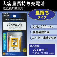 メーカー ELPA(朝日電器) 商品カテゴリ 電話機・FAXアクセサリ>子機用充電池・バッテリー 発送目安 1〜2週間以内に発送予定 お支払方法 銀行振込・クレジットカード 送料 送料無料 特記事項 その他 [家電】生活家電]コードレス電話機用の充電池。