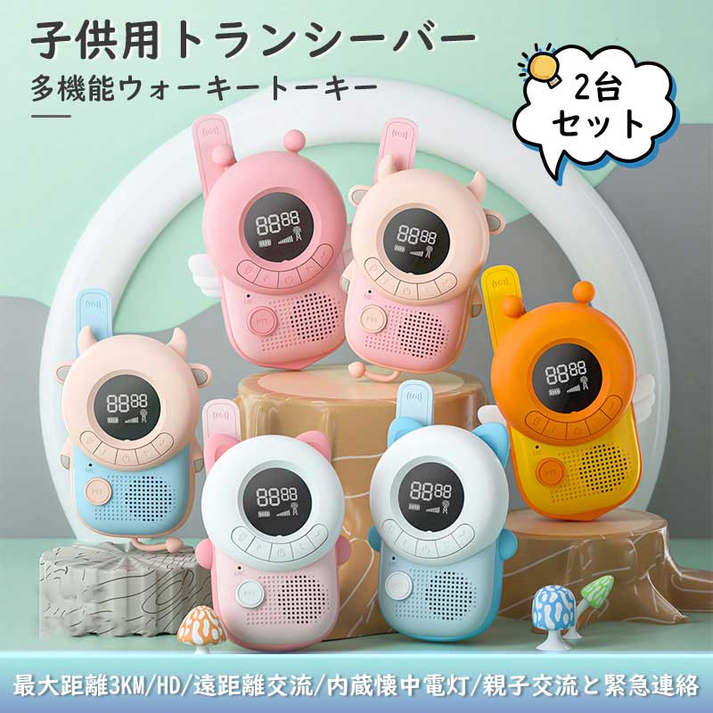 【商品説明】 ・通話機能は、最大伝送距離は約1-3?。近距離の通信として非常に便利です。 ・自動スキャン機能により、同じチャンネルで他のユーザーの周波数をスキャンすることができます。 ・20chからチャンネルを合わせれば、複数台での通話も可能です。 ・会話のプライバシー、子供の安全を守ります。 ・LCDディスプレイ付きで、暗い環境でも操作しやすく便利です。 ・キャンプ、ハイキングなどアウトドア活動の際に、トランシーバーで子供と通話しながら歩くことで迷子遭難を防止できます。 ・懐中電灯としても使用可能です。 ・首掛けストラップ付き。 ※ 単四電池*4 ※【電池は・別途ご用意してください。】 ※本商品は、電波法令で定められている技術基準に適合していることを 証明する技適マークが貼付されていない無線機器です。 日本国内で使用する場合は、電波法違反になる恐れがございますので、 ご使用の際には、十分ご注意くださいますようお願い致します。