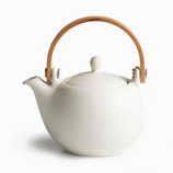 特長・さらりとした釉薬の手触り、まあるいフォルムに温かみのある木のハンドルがついた茶器です。