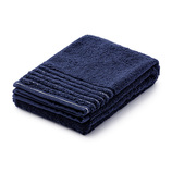 [みなも-MINAMO-]・先染めの優しい紺と露草色、晒しと薄墨色の濃淡のある二色の糸の組み合わせで、揺らめく水面のような、奥行きのある風合いのタオルを今治の職人が確かな技術で織り上げました。