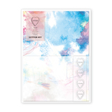 特長・水彩デザインの上に箔押しを施した便箋とワンポイントの箔押しが入った封筒のレターセットです。