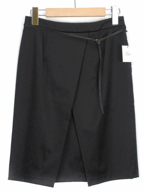 【中古】未使用品フューレンFuhlenスカートタイトタックベルトサテン38黒ブラックレディース【ベクトル古着】200604ベクトルプレミアム店