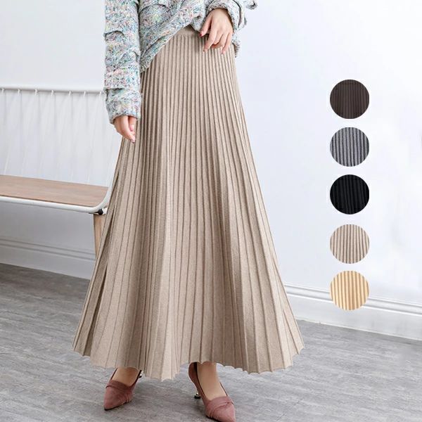 ニットスカートマキン丈レディースロングスカートAラインプリーツニットスカート春秋冬ハイウエストスカートフレアスカートレディースボトムスエレガントカジュアルスカート大人っぽい通勤デートお出かけ