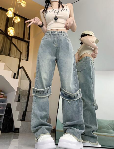 ベルト デニム ズボン ボトムス パンツ ジーンズ ジーパン シンプル ダンス 衣装 ヒップホップ HIPHOP レディース ガールズ  メンズ ストリート 奇抜 派手 韓国 ビッグ 大きいサイズ