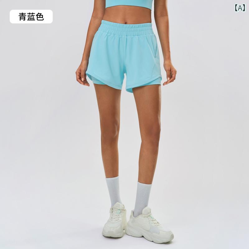 ショートパンツレディース高腰スポーツ2重構造速乾通気性ランニング運動ヨガホットパンツ青色ビタミン粉石墨灰白黒