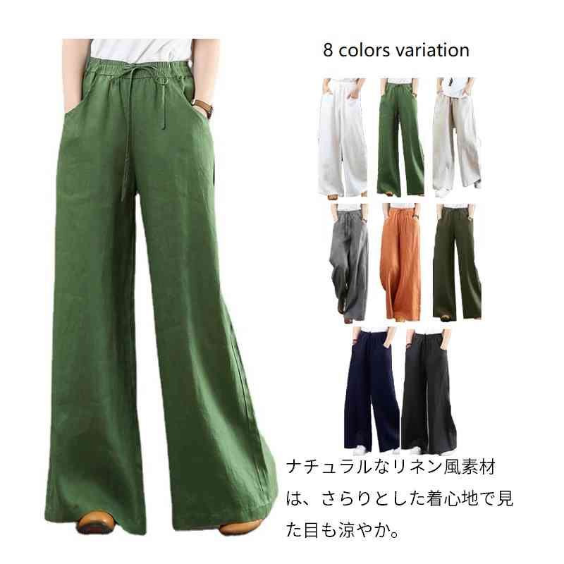サイズS M L XL 2XL 3XLサイズについての説明【S】ウェスト54-92cm ヒップ100cm 裾幅72cm ワタリ幅66cm 前股上30cm 着丈95cm 【M】ウェスト58-96cm ヒップ104cm 裾幅74cm ワタリ幅68cm 前股上30.5cm 着丈95cm 【L】ウェスト62-100cm ヒップ108cm 裾幅76cm ワタリ幅70cm 前股上31cm 着丈96cm 【XL】ウェスト66-104cm ヒップ112cm 裾幅78cm ワタリ幅72cm 前股上31.5cm 着丈96cm 【2XL】ウェスト70-110cm ヒップ116cm 裾幅80cm ワタリ幅74cm 前股上32cm 着丈98cm 【3XL】ウェスト74-110cm ヒップ120cm 裾幅82cm ワタリ幅76cm 前股上32.5cm 着丈98cm素材綿 リネン色ホワイト グレー グリーン ブラック ベージュ オレンジ ネイビー カーキグリーン備考