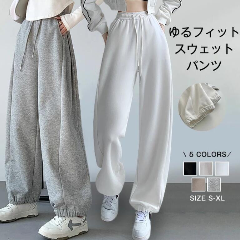 スウェットパンツレディースリラックスパンツパンツ秋冬きれいめ可愛い無地大きいサイズ体型カバーおしゃれゆったりシンプルカジュアルナチュラル着痩せボトムス無地春秋ゆる裾ゴム