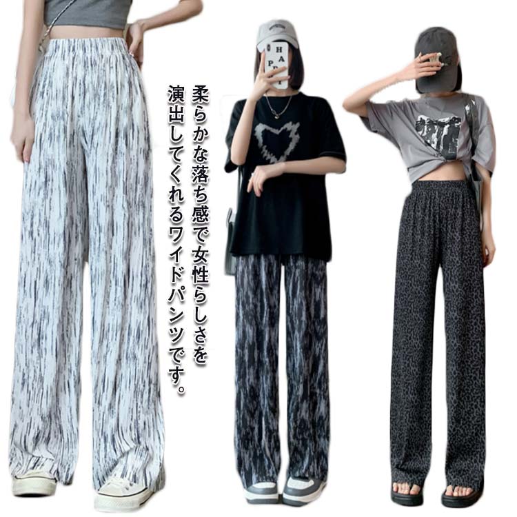 涼しいレディースロングパンツプリーツパンツひんやりウエストゴムワイドパンツゆったりリラックス大きいサイズ無地シンプルおしゃれ柔らかい快適着心地春夏接触涼感