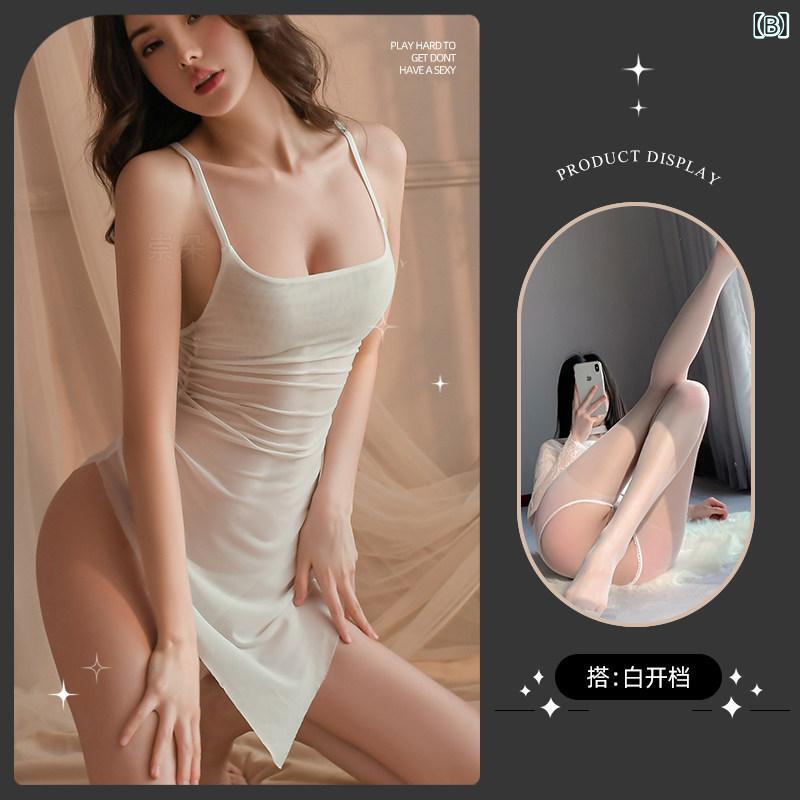 レディース セクシー 吊り帯 スリープドレス ストッキング ペンシルスカート 高級感 透け素材  調 ソフトタッチ ルームウェア インナーセット 魅力的的 女性用 寝間着