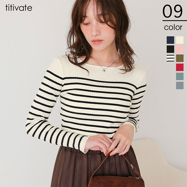 ・太めのリブ編み柄が特徴のボートネックリブ編みニット。・首元は女性らしいボートネックデザイン。・着回ししやすく1枚持っていると便利。・肌触りの良い素材感です。[型番:ACXP3872]■カラー:9色展開【S】着丈:56、肩幅:32、袖丈:57、アームホール:35、バスト:72、裾幅:36【M】着丈:58、肩幅:34、袖丈:58、アームホール:37、バスト:76、裾幅:38※( )で表記されている数字はヌードサイズです。ヌードサイズとは衣服を身につけない身体のサイズです。お客様ご自身の身体サイズと比較してお選びください。 ■素材: レーヨン 49%ポリエステル 28%ナイロン 23% ■お手入: >>商品のお取り扱い方法 ■原産国: 中国ボートネックリブ編みニット/ティティベイト(titivate)アイボリーブルーグリーンピンクブラックグレーオフホワイト/ブラックネイビーオリーブレッド画面上と実物では、多少色具合が異なって見える場合がございます。