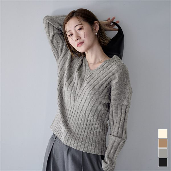 ・抜け感のある深めのVネック・少し表面感のある素材・ゆるっとしたサイズ感[型番:AEXP4147]■カラー:ブラック、ブルー、グレー【F】前着丈:63、後着丈:65、肩幅:48、袖丈:50、アームホール:51、バスト:117、裾幅:50※( )で表記されている数字はヌードサイズです。ヌードサイズとは衣服を身につけない身体のサイズです。お客様ご自身の身体サイズと比較してお選びください。 ■素材: ポリエステル 67%ナイロン 18%ウール 12%ポリウレタン 3% ■お手入: >>商品のお取り扱い方法 ■原産国: 中国深Vネックボリュームスリーブニット/ティティベイト(titivate)ブラックブルーグレー画面上と実物では、多少色具合が異なって見える場合がございます。