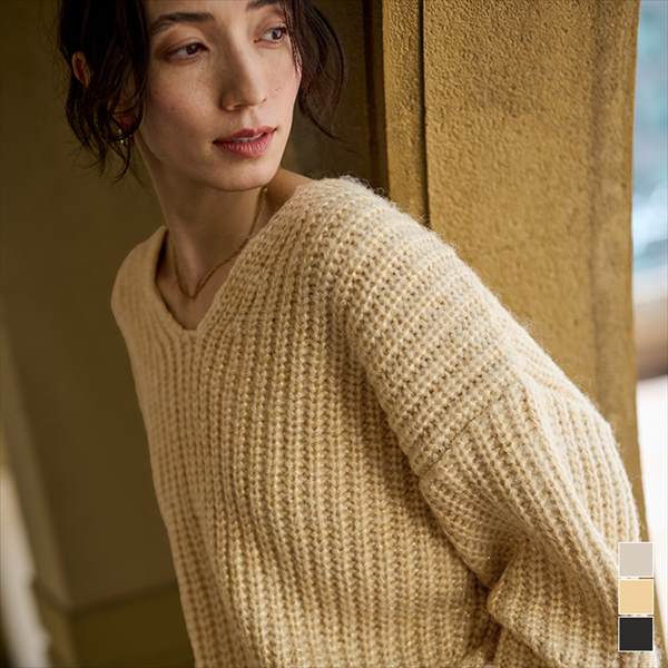 ◆DETAILざっくりとしたVネックのニット。ラメ糸がきらっとアクセントになる主役級の1枚に仕上げました。Vネックは襟を抜いても着れるようにサイズをこだわって調整しました。ローゲージなのでたっぷりとしたボリューム感が楽しめます。◆FABRICウールブレンドのラメが入ったローゲージニット[型番:BEXU1699]■カラー:ブラック、グレージュ、イエロー【S】前着丈:53、後着丈:58、肩幅:56、袖丈:43、アームホール:46、バスト:114、裾幅:38【M】前着丈:55、後着丈:60、肩幅:58、袖丈:44、アームホール:48、バスト:118、裾幅:40【L】前着丈:57、後着丈:62、肩幅:60、袖丈:45、アームホール:50、バスト:122、裾幅:42※( )で表記されている数字はヌードサイズです。ヌードサイズとは衣服を身につけない身体のサイズです。お客様ご自身の身体サイズと比較してお選びください。 ■素材: ポリエステル 52%アクリル 33%ナイロン 10%ウール 5% ■お手入: >>商品のお取り扱い方法 ■原産国: 中国ラメローゲージVネックオーバーサイズニット/ユアーズ(ur's)ブラックグレージュイエロー画面上と実物では、多少色具合が異なって見える場合がございます。