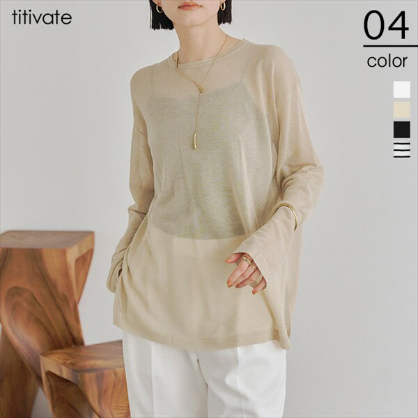 ・シアー素材で軽い着心地。・サイドスリットデザイン入り。・ざっくりとしたサイズ感。・レイヤードアイテムとしても使える有能アイテム。[型番:ADXP4094]■カラー:ボーダー/オフ、ベージュ、ブラック、オフホワイト【F】着丈:65、肩幅:52、袖丈:53、アームホール:42、バスト:118、裾幅:59※( )で表記されている数字はヌードサイズです。ヌードサイズとは衣服を身につけない身体のサイズです。お客様ご自身の身体サイズと比較してお選びください。 ■素材: レーヨン 81%ナイロン 19% ■お手入: >>商品のお取り扱い方法 ■原産国: 中国サイドスリットシアーニットプルオーバー/ティティベイト(titivate)ボーダー/オフベージュブラックオフホワイト画面上と実物では、多少色具合が異なって見える場合がございます。