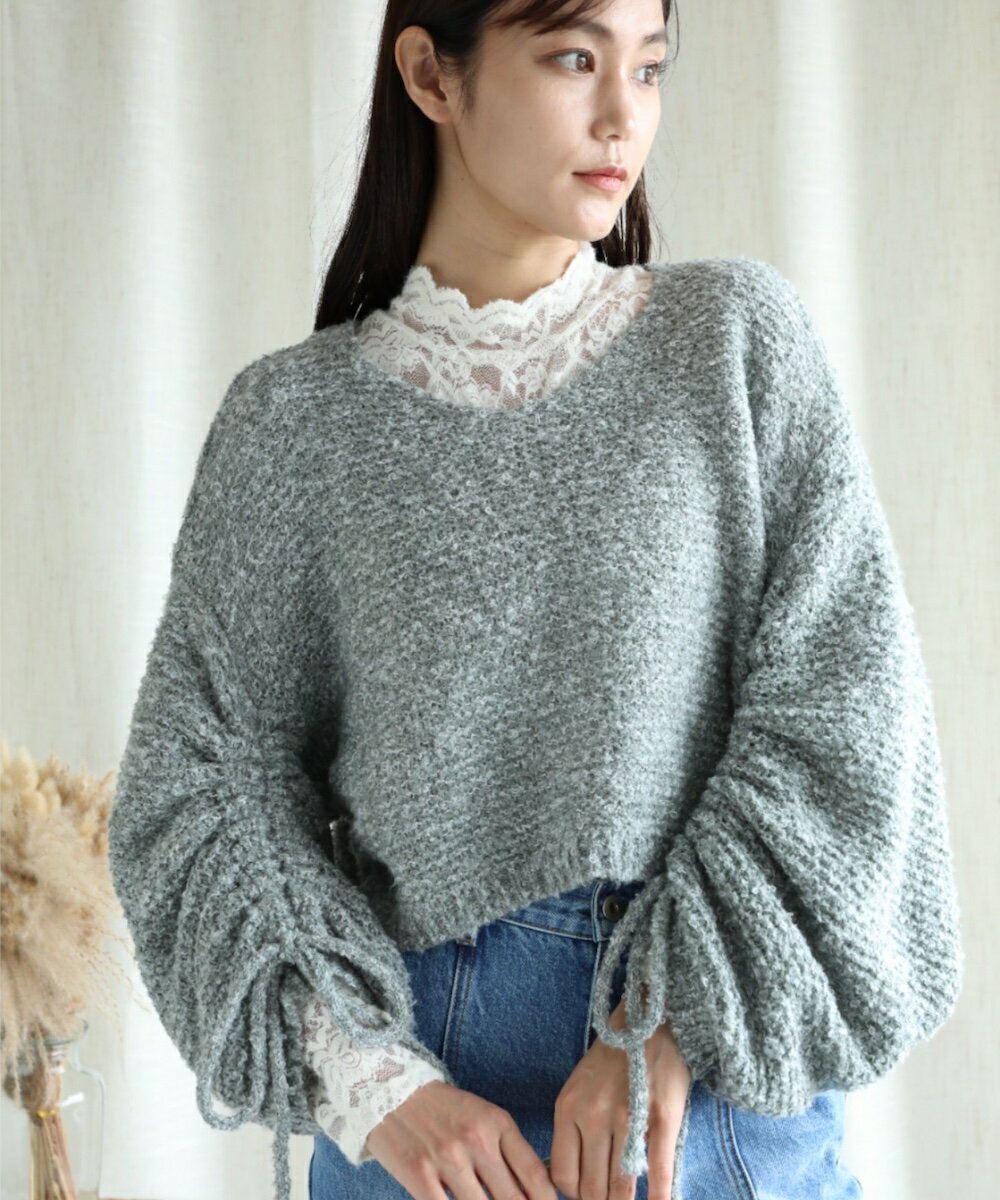 [型番:dcch2019a]くしゅっとした袖がお洒落感をプラスしてくれるショート丈ニットトップス。シンプルで合わせやすいブラック、グレー、ライトグレーの3色展開!柔らかく暖かみのある素材を使用しているので、秋冬のシーズンにぴったりです。袖のドロストデザインは立体感を作り出し、可愛らしい雰囲気を演出。絞ることで袖のボリューム感や長さを調整できるので、コーディネートによってお好みのシルエットにカスタマイズできます。ゆったりとしたシルエットですが、程よい短めの丈感がメリハリのある印象に。ざっくりと開いたVネックは首元を綺麗に魅せ、女性らしさを際立てます。カジュアルなパンツスタイルはもちろん、スカートを合わせたキレイめスタイルもおすすめです。シンプルなデザインなので、様々なシーンで活躍できる万能アイテムです。■カラー:ブラック、ベージュ、ライトグレーMEDIUM:身幅62 肩幅60 着丈43 そで丈55※( )で表記されている数字はヌードサイズです。ヌードサイズとは衣服を身につけない身体のサイズです。お客様ご自身の身体サイズと比較してお選びください。 ■素材: 素材:ポリエステル100% ■お手入: >>商品のお取り扱い方法 ■原産国: 中国袖ドロストショートデザインニット/アイモハ(aimoha)ブラックベージュライトグレー画面上と実物では、多少色具合が異なって見える場合がございます。