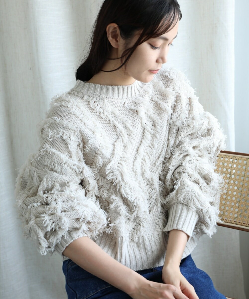 [型番:dcch2034a]1. デザイン: 全体にフリンジが施されたジャガード編みが特徴的です。フリンジによって立体感が生まれ、個性的で存在感のあるデザイン。 2. 素材感: ジャガード編みの素材は、厚みがあり、暖かく、秋冬の季節にぴったり。フリンジ部分が柔らかく、肌触りも◎。 3. カラー展開: ブラック、ブルー、グレー、ベージュの4色。落ち着いたトーンで、様々なスタイルに合わせやすいカラーです。 4. シルエット: ゆったりとしたオーバーサイズでリラックスした着心地。裾や袖口にはリブが施されており、全体のバランスを引き締めています。 5. スタイリング: デニムやスラックス、スカートなどと合わせてカジュアルなスタイルにも、ちょっとしたお出かけにも◎。インパクトのあるデザインなので、シンプルなボトムスと組み合わせるとバランスの良いコーディネートが完成します。秋冬のワードローブに個性を加える一枚で、温かさとスタイルの両方を兼ね備えたアイテムです。■カラー:ブラック、ベージュ、ブルー、グレー身幅60 肩幅60 着丈45 袖丈53※( )で表記されている数字はヌードサイズです。ヌードサイズとは衣服を身につけない身体のサイズです。お客様ご自身の身体サイズと比較してお選びください。 ■素材: アクリル100% ■お手入: >>商品のお取り扱い方法 ■原産国: 中国フリンジジャガードニット/アイモハ(aimoha)ブラックベージュブルーグレー画面上と実物では、多少色具合が異なって見える場合がございます。
