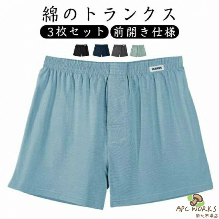 【綿のトランクス】【3枚セット】【前開き仕様】肌触りが良く快適な綿のトランクスです。幅広のウエストゴムで腹部への圧迫感が少なく、開放的な履き心地。普段使いからスポーツやアウトドアまで、どんなシーンにもオススメです。フロント部分は前開き仕様になっております。サイズL XL 2XL 3XLサイズについての説明L 体重50-60kg ウエスト66-73cmXL 体重60-75kg ウエスト73-80cm2XL 体重75-85kg ウエスト80-86cm3XL 体重85-100kg ウエスト86-93cm素材綿色01 02 03 04 05 06 07 08 09 10 11備考サイズ詳細等の測り方はスタッフ間で統一、徹底はしておりますが、実寸は商品によって若干の誤差(1cm〜3cm )がある場合がございますので、予めご了承ください。商品の色は、撮影時の光や、お客様のモニターの色具合などにより、実際の商品と異なる場合がございます。あらかじめ、ご了承ください。▼色味の強い製品によっては他の衣類などに色移りする場合もございますので、速やかに(脱水、乾燥等)するようにお願いいたします。▼▼生地の特性上、やや匂いが強く感じられるものもございます。数日のご使用や陰干しなどで気になる匂いはほとんど感じられなくなります。メンズ パンツ 蒸れない トランクス インナー 下着 ナイトウエア 新登場! 01 02 03 04 05 06 07 08 09 10 11 L XL 2XL 3XL