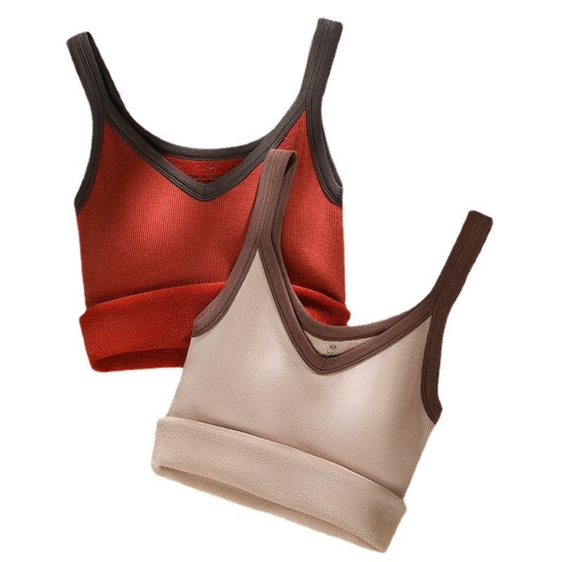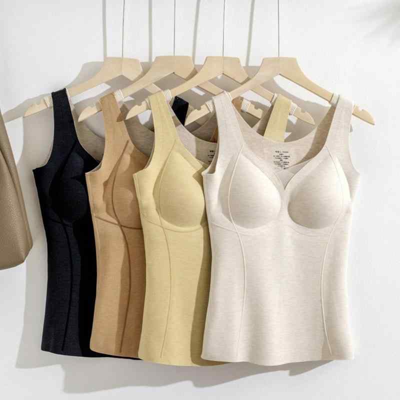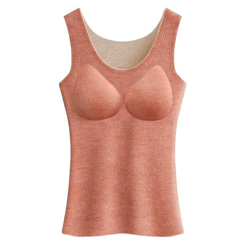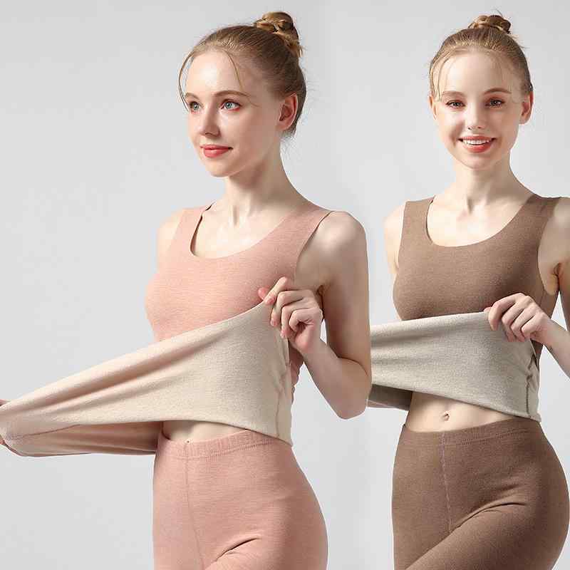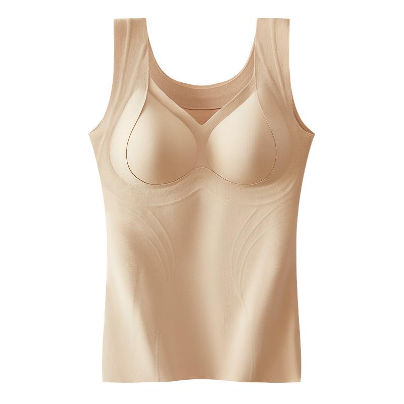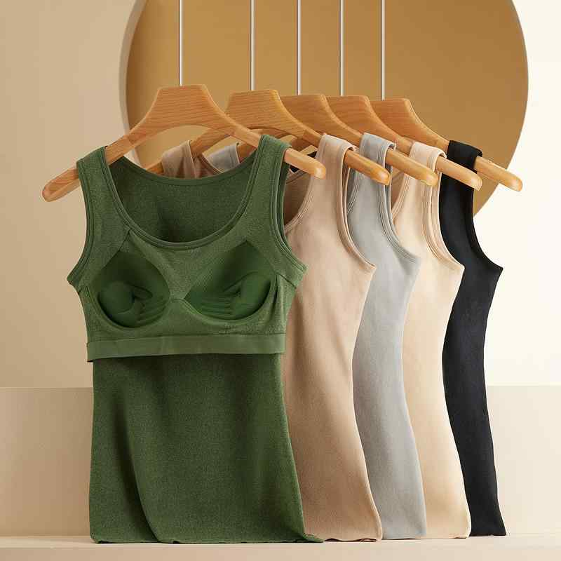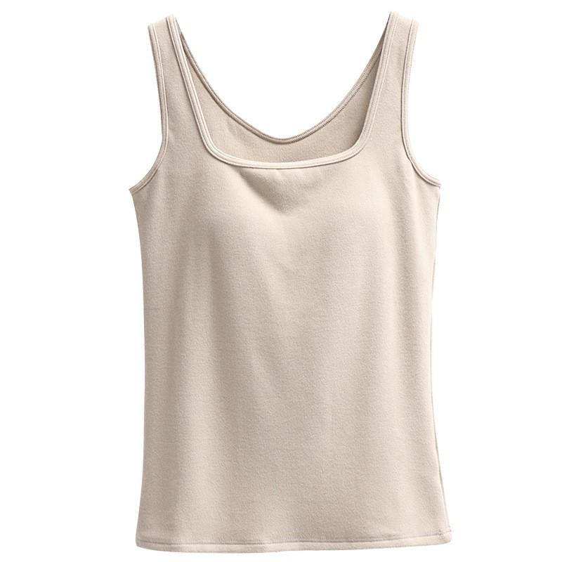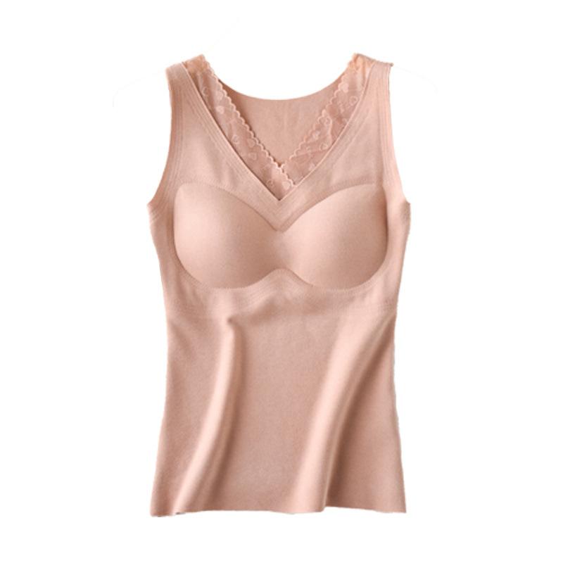 ベスト レディース 火山岩 恒温 加熱 保温 カップ付き ノンワイヤー ブラ内蔵 フレンチ スクエアネック シームレス インナー 秋冬