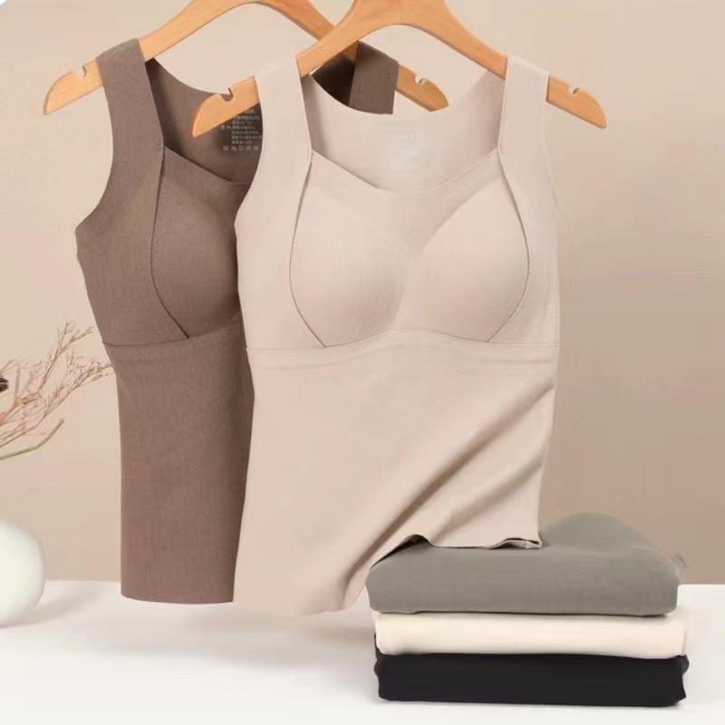 ベスト レディース 秋冬 無縫製 保温 ブラカップ付き インナー 発熱 高弾性 キャミソール トップス スリム