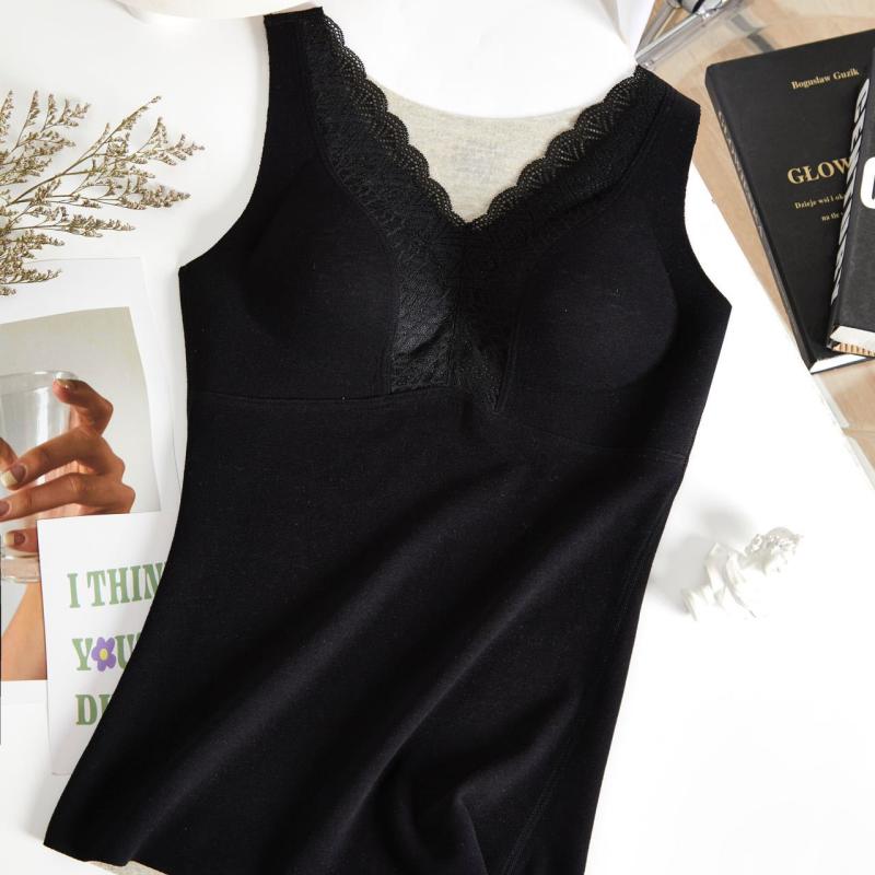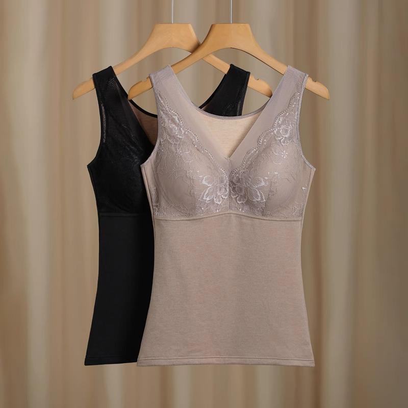 トップス レディース 秋冬 レース 保温 ベスト ノンワイヤー 寄せ上げ ずり落ち防止 防寒 インナー あったか