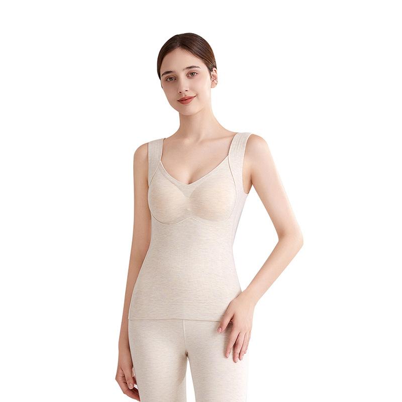 インナー レディース 秋冬 暖かい 裏起毛 シルク 発熱 切り替え ウール ベスト ブラパッド付き 防寒