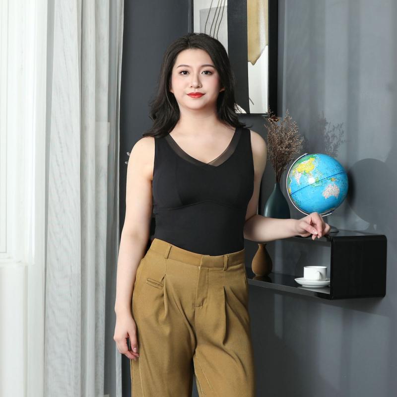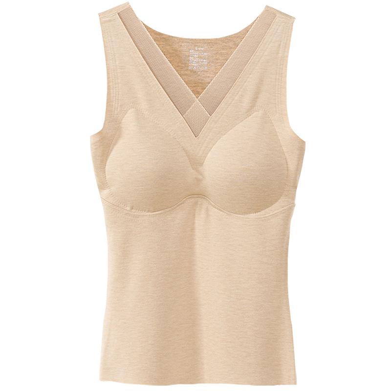 ベスト レディース Vネック 胸パッド付き カシミヤ 蚕糸 裏起毛 ブラトップ インナー 防寒 秋冬 あったか 部屋着 重ね着