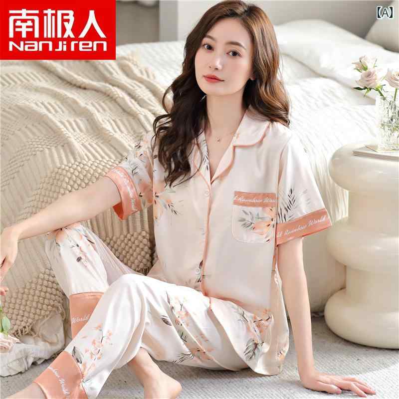 パターン: 花パンツの前立て:ゴムバンド本体生地重量:200g以下適用季節:夏袖丈:半袖厚さ: 薄手該当するシーン:パジャマ服の詳細: プリントパンツの長さ: ロング