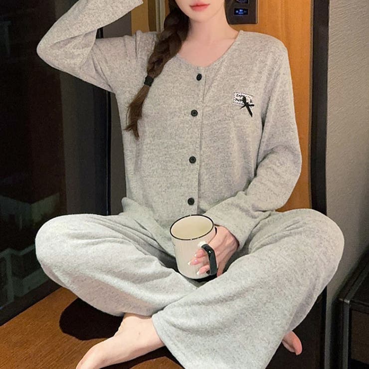 ワンポイントのロゴとリボン使いがチャーミングなルームウェア3点セット。ソフトで滑らかな素材感を使用して、ロングシーズン着用できるアイテムに仕上げました。キャミソールはカップが付いたラクと安心感を両立したデザイン。バストラインが美しく見える設計にもこだわりました。カーディガンタイプのトップスは前開きなので、羽織としても活躍すること間違いなし。お手持ちのルームウェアとのコーディネートもお楽しみいただけます。■サイズ(cm)【M】身幅:長袖:47.0,キャミソール:35.5cm / 肩幅:長袖:37.5cm / 総丈:長袖:52.0,キャミソール:〜45.0cm / そで丈:長袖:56.0cm / ウエスト:53cm / ヒップ:93cm / パンツ丈:91.5cm / 股上:31.5cm / 股下:62cm / もも周り:59cm / すそ周り:46cm 【XL】身幅:長袖:51.0,キャミソール:35.5cm / 肩幅:長袖:41.5cm / 総丈:長袖:56.0,キャミソール:〜47.0cm / そで丈:長袖:58.5cm / ウエスト:57cm / ヒップ:99cm / パンツ丈:94.0cm / 股上:32.0cm / 股下:62.0cm / もも周り:61cm / すそ周り:50cm■素材【2点すべて】ポリエステル60%, コットン(綿)35%, ポリウレタン5%■モデル情報-■原産国MADE IN CHINA■注意事項・撮影画像と実物の色合いが多少異なって見える場合がございます。・サイズは平置きでの採寸となりますので、測定方法によって多少の誤差が生じる場合がございます。・入荷・生産時期により、色味、サイズ、素材などが多少異なる場合がございます。・本製品は生産過程におきまして、生地を織る際の糸の継ぎ目や多少のほつれが生じることがあります。・お手頃な価格でご提供しているため、簡易包装となっており、保管・梱包時にシワが生じる場合がございます。・靴商品については、商品箱が破損している場合がございます。上記内容について、あらかじめご了承くださいますようお願い申し上げます。返品・交換について購入後の交換は受け付けておりません。予めご了承ください。返品を希望される場合は購入履歴一覧の「ショップへの問い合わせ」よりお問い合わせください。=========================複数配送先指定について1件の注文に対して、異なる住所への配送は対応出来かねます。恐れ入りますが、異なる住所へ配送をご希望の場合、配送先毎に分けて注文いただきますようお願い申し上げます。【ルームウェア・パジャマWOMEN】ダークグレー ライトグレー ピンク グリーン M XL