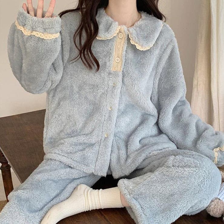 丸襟とレースの組み合わせが可愛いルームウェア。思わず頬ずりしたくなるような、ふわもこの素材感が体をあたたかく包み込んでくれます。ふっくらとしたシルエットも可愛く、着るだけで気分が上がること間違いなし。前開きタイプなので着脱しやすく、起床時にパジャマの上からサッと羽織るなど冷えがちな朝にもぴったりです。休日ゆっくり過ごしたいときや入浴後のリラックスタイムにと、秋冬のおうち時間に欠かせないアイテムです。■サイズ(cm)【M】身幅:54.0cm / 総丈:60.5cm / 裄丈:75.0cm / ウエスト:45cm / ヒップ:98cm / パンツ丈:90.0cm / 股上:35.5cm / 股下:57.0cm / もも周り:59cm / すそ周り:38cm 【XL】身幅:54.5cm / 総丈:62.0cm / 裄丈:76.0cm / ウエスト:56cm / ヒップ:98cm / パンツ丈:93.0cm / 股上:35.5cm / 股下:57cm / もも周り:59cm / すそ周り:38cm■素材【2点すべて】ポリエステル100%■モデル情報-■原産国MADE IN CHINA■注意事項・撮影画像と実物の色合いが多少異なって見える場合がございます。・サイズは平置きでの採寸となりますので、測定方法によって多少の誤差が生じる場合がございます。・入荷・生産時期により、色味、サイズ、素材などが多少異なる場合がございます。・本製品は生産過程におきまして、生地を織る際の糸の継ぎ目や多少のほつれが生じることがあります。・お手頃な価格でご提供しているため、簡易包装となっており、保管・梱包時にシワが生じる場合がございます。・靴商品については、商品箱が破損している場合がございます。上記内容について、あらかじめご了承くださいますようお願い申し上げます。返品・交換について購入後の交換は受け付けておりません。予めご了承ください。返品を希望される場合は購入履歴一覧の「ショップへの問い合わせ」よりお問い合わせください。=========================複数配送先指定について1件の注文に対して、異なる住所への配送は対応出来かねます。恐れ入りますが、異なる住所へ配送をご希望の場合、配送先毎に分けて注文いただきますようお願い申し上げます。【ルームウェア・パジャマWOMEN】アイボリー パープル ピンク ブルー M XL