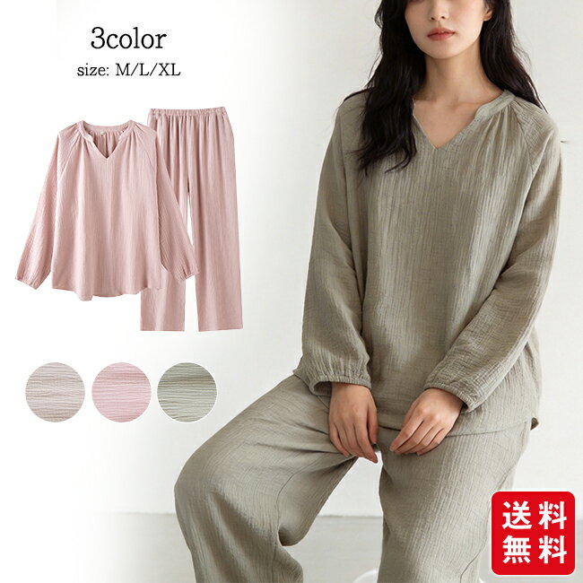 ITEM INFORMATION - アイテムインフォメーション 商品名 ダブルガーゼ うるふわパジャマ カラー ペールグレー、ペールピンク、ライラック 素材 綿100% サイズ目安 【M?L】バスト:79?94 身長:154?162 ウエスト:64?77 【L?LL】バスト:86?101 身長:154?162 ウエスト:69?85 本体重量 【M?L】300g 【L?LL】310g 送料 宅配便送料無料 ※沖縄、離島、一部地域は差額送料が必要となります。詳しくはお問合せ下さい ご注意 ・衛生上の問題のため、開封・着用後の返品・交換はお受けできません。 原産国 中国製(企画デザイン:日本) [KEYWORD] ダブルガーゼ うるふわパジャマ 送料無料 綿100% パジャマ レディース 寝巻 長袖 上下 ガーゼ ルームウェア メイダイ パジャマ 女性 春 夏 秋 冬 テーパード パジャマ ゆったり 吸水性 通気性 ダブルガーゼ 快適 パジャマ ■メイダイ商品一覧はこちらダブルガーゼ うるふわパジャマ 肌触りのいいガーゼ生地を使用したルームウェアの上下セット いい眠りのための 上質ガーゼの贅沢パジャマ 吸水性、通気性に優れた綿100%ダブルガーゼに天然由来成分シアバター×シルクアミノ酸×オリーブオイル配合し、しっとりうるふわ。 洗うほどにふんわり肌に馴染むやさしい肌触り。 袖はドルマンスリーブだから窮屈感無しで動きやすく、ゆったりと包み込まれるような快適な着心地。 ボトムはテーパード型でゆったりしつつもスッキリとしたシルエット。 夏涼しく、冬温かい一年中快適パジャマ。