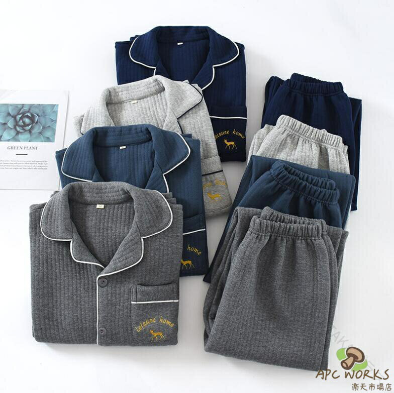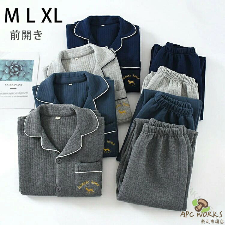 .メンズ パジャマ 秋冬用 の 長袖 上下 セット ルームウェア は 厚手 綿 入り で 暖かく 快適 な 睡眠 を 実現 します。テーラード デザイン と 前開き タイプ で 部屋着 や 寝巻き に 最適。くつろぎ と リラックス を 求める 方 に ぴったり の ゆったり サイズ で グレー ネイビー ブルー の カラー バリエーション を ご用意。M サイズ から XL サイズ まで 幅広く 対応 しています。。