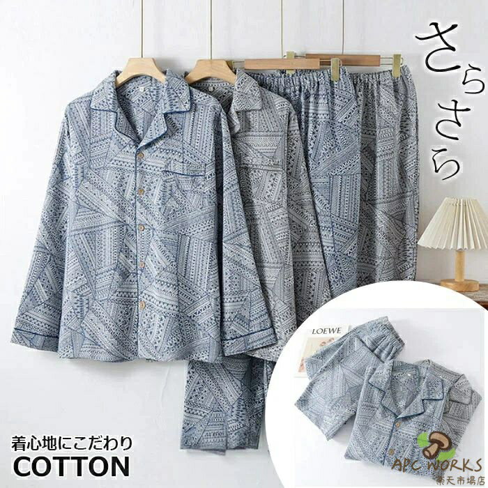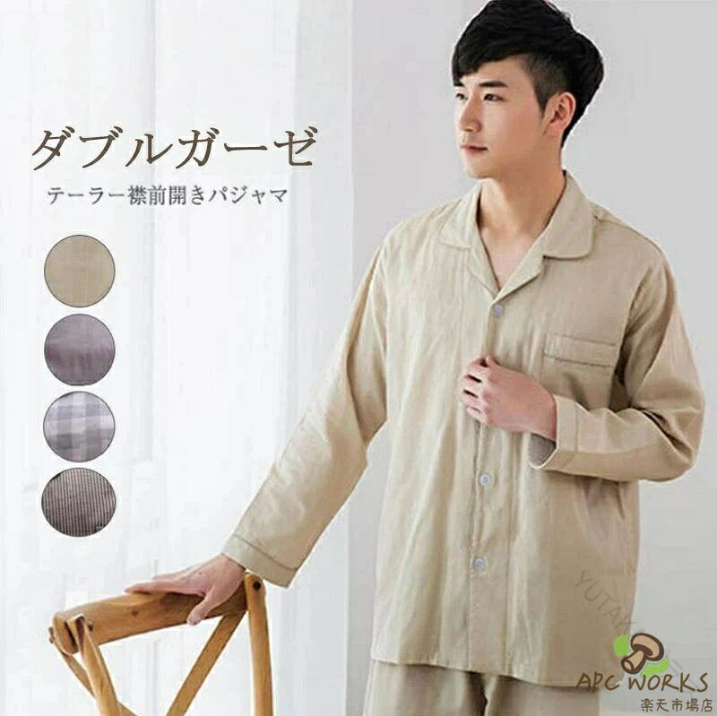 .春用 の パジャマ メンズ 長袖 前開き タイプ で ダブルガーゼ 素材 の コットン ルームウェア です。テーラー襟 と ドット柄 が おしゃれ で 快適 な 着心地 を 実現。入院用 や 転勤用、海外出張 に も 最適 で 主人 や 旦那、男の子向け に 幅広く 対応 する Sサイズ から 3Lサイズ まで 用意 しています。。