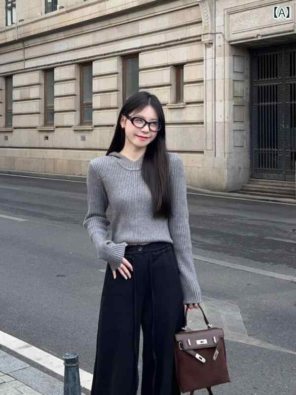ニットセーター レディース フード付き 韓国 秋冬 ウール素材 スリムシルエット コーディネートしやすい レイヤード トップス 暖かみ 軽量・対象年齢: 18-24歳・機能: 保温発熱・サイズ展開: S.M.L.XL・柄: 無地・・フード: フード・カラー展開: グレー・形態: 単品・袖丈: 長袖・着脱方法: プルオーバー・シルエット: ストレート
