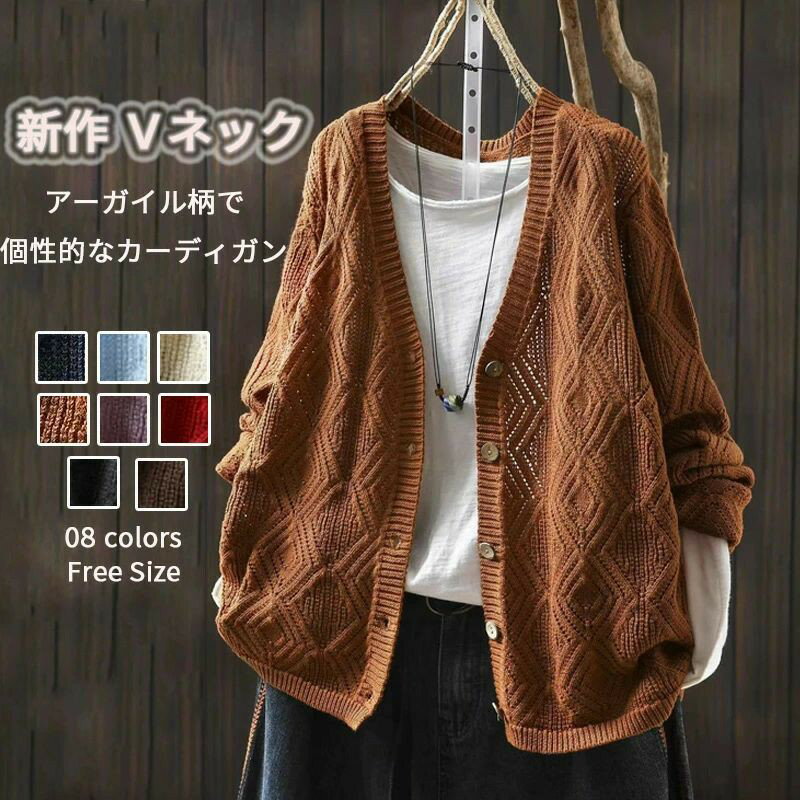 ・大人気のアーガイル柄で、 トレンド感とクラシックな奥ゆかしさを両立。 ・Vネックが首元をすっきり見せ、 顔周りを引き立てる優秀なデザイン。 ・どんなボトムスにも合わせやすいシンプルなシルエットながら、 柄によって主役級の存在感に。 【商品情報】 ■カラー: ダークブルー、オレンジ、ライトブルー、杏色、パープル、レッド、コーヒー色、ブラック ■サイズ(cm) 表示サイズ:F 総長:61cm バスト:104cm 肩幅:42cm 袖丈:65cm ■備考 【素材】コットン 【裏地】なし 【伸縮性】少し有り ※寸法は手測りなので若干誤差がございますが、ご了承くださいませ。 ※お品物の色合いは、写真撮影、パソコン画面表示等の環境の違いにより、若干異なる場合がございますので予めご了承くださいませ。