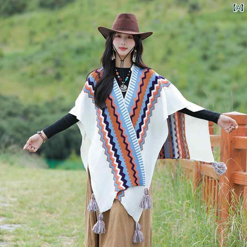 ショールケープストールボヘミアンエスニックマントレディース草原旅行服秋冬羽織りアウターウェアブランケット厚手