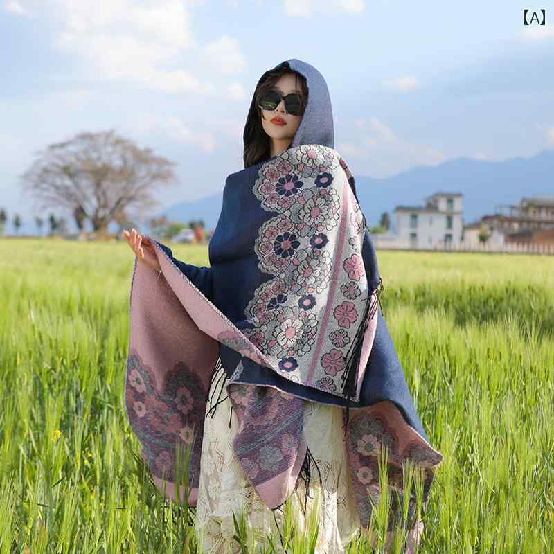 ショールボヘミアンファッションアクセサリー旅行レディース暖かいエスニックマント写真ジャケットフードスカーフ