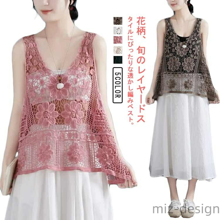 【送料無料】Vネックレディースメッシュ春夏秋ニットベストセータートップスノースリーブニットトップスレイヤード