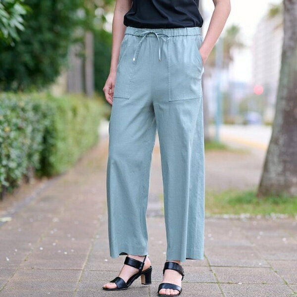 [型番:08562004]【接触冷感/UVカット/吸水速乾/ウォッシャブル!と多機能なリネン混イージーワイドパンツ!】ベイカーデザインの大きめパッチポケットがポイントです。ポケットが程よいアクセントとなり、腰回りをすっきり見せてくれます。また、ヒップからストンとまっすぐ落ちるシルエットが特徴で、身体のラインを拾いにくいデザインもうれしいポイントです。素材には、縦糸に麻、横糸にセルロースとポリウレタンを使用しています。天然素材ならではの風合いや質感をお楽しみいただけるパンツです。さらに、仕上げにタンブラー加工を施すことで、柔らかく快適な穿き心地に仕上げています。ウエストはぐるっとゴム仕様で、真夏の暑い時期にもラクに穿けるデザイン。さらに、ウエストにはドローストリング(調節用の紐)が付いており、締め具合を簡単に調整できます。カジュアルにTシャツやリネンシャツを合わせたり、フリルやレースのブラウスと組み合わせて女性らしいスタイルを作ったりと、幅広いスタイリングをお楽しみいただけます。【仕様】・ポケット数:横×2 後ろ×2・ウエスト総ゴム・ウエストドロスト・裏地なし※こちらの商品はやや透け感があるため、インナーの着用をおすすめします。※照明の関係により、実際よりも色味が違って見える場合があります。また、パソコン・スマートフォンなどの環境により、若干製品と画像のカラーが異なる場合もございます。■カラー:3色展開34(SS):着丈:92cm W:64cm H:94cm 股下:62cm 前股上:30cm36(S):着丈:94cm W:67cm H:97cm 股下:63cm 前股上:30cm38(M):着丈:96cm W:70cm H:100cm 股下:65cm 前股上:31cm40(L):着丈:98cm W:73cm H:103cm 股下:66cm 前股上:31cm※( )で表記されている数字はヌードサイズです。ヌードサイズとは衣服を身につけない身体のサイズです。お客様ご自身の身体サイズと比較してお選びください。 ■素材: 麻61% 再生繊維(セルロース)37% ポリウレタン2% ■お手入: >>商品のお取り扱い方法 ■原産国: ベトナム製【接触冷感洗えるウエストゴム】ウォッシャブルリネンイージーワイドパンツ/ドレステリア(DRESSTERIOR)グレージュ(050)ブラウン(044)ミントグリーン(021)画面上と実物では、多少色具合が異なって見える場合がございます。