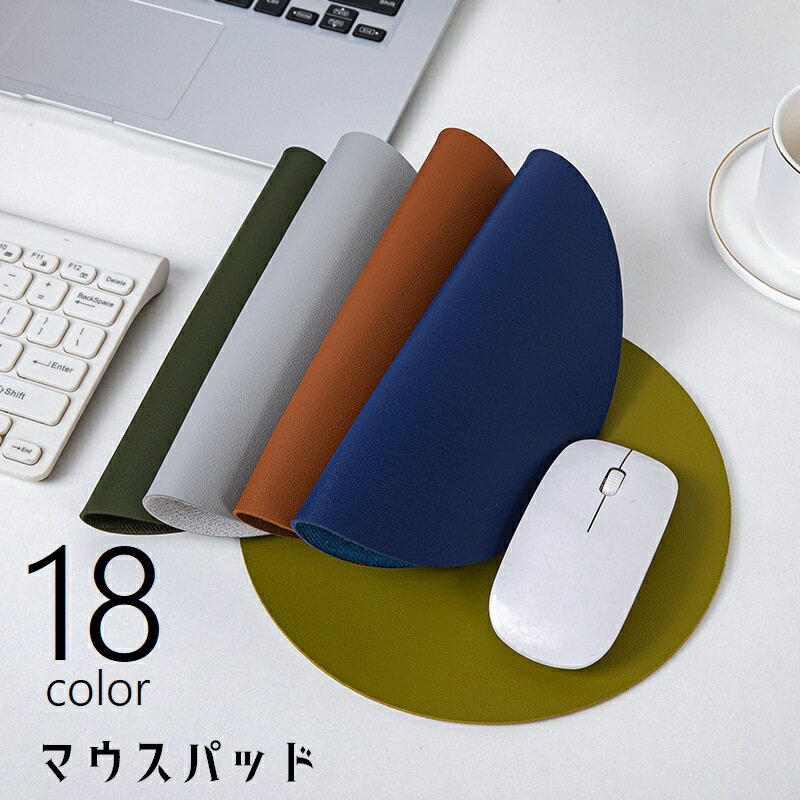 送料無料マウスパッドパソコン周辺雑貨パソコン周辺アクセサリーレザー調両面仕様防水防汚汚れ防止保護カバーサークル丸型自宅オフィスビジネス無地単色シンプル便利グッズ緑青黄灰ネイビー茶赤ピンク