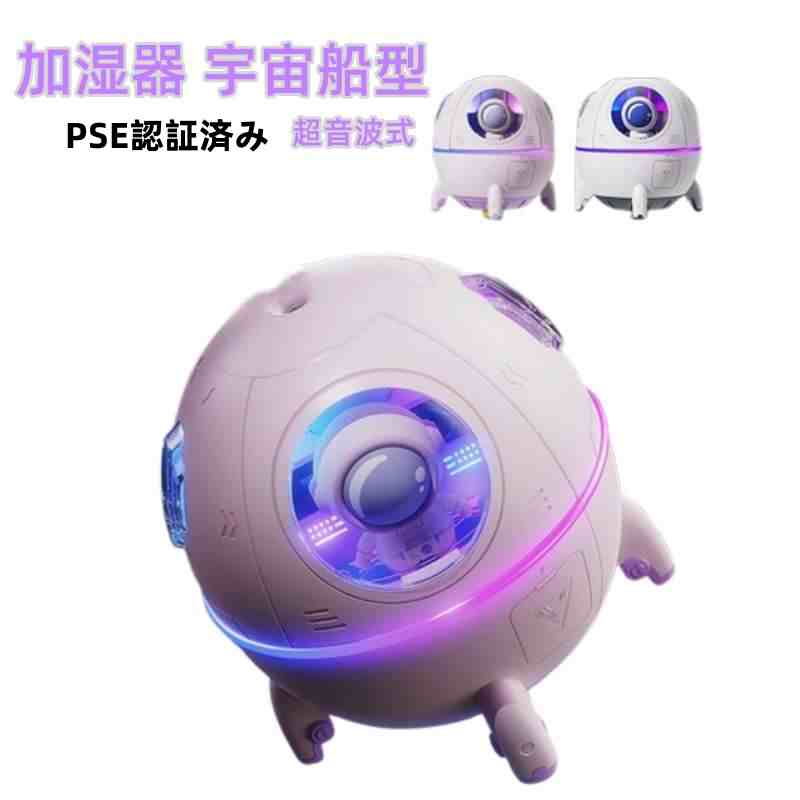 【宇宙船型 USB加湿器】 ■かわいい宇宙船デザインのコンパクト加湿器 デスクやベッドサイド等、場所を選ばないインテリアとしても最適。 ■小さくてもしっかり加湿! 最大過湿量約40ml/hのパワフル加湿! 電源ボタンを押して連続スプレーモード/間隔スプレーモードに切り替えられます ■ハッチを開けて中のフィギュアを取り出せます。 宇宙飛行士の代わりに好きな小物を入れるのもOK! ■宇宙船の内部にRGBライトを搭載 【2モードのライト】7色led呼吸ライトとモノクロの2パターンで宇宙空間を演出 ※電源ボタン長押し切り替え ■商品仕様 タイプ:給電式/充電式 サイズ:W110×H119×D110mm 重量:268g 加湿量:約40ml/h 加湿面積:約8平方メートル 加湿方式:超音波式 加湿モード:連続スプレー/間隔スプレー タンク容量:220ml 製造国:中国 ※初回起動時はスポンジ部分が乾いているため、給水後、水が浸透するまでしばらくお待ちいただいてからご使用ください。、