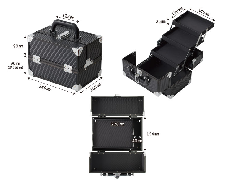 リップ・メイクブラシなどスッキリ収納できるメイクボックスです。