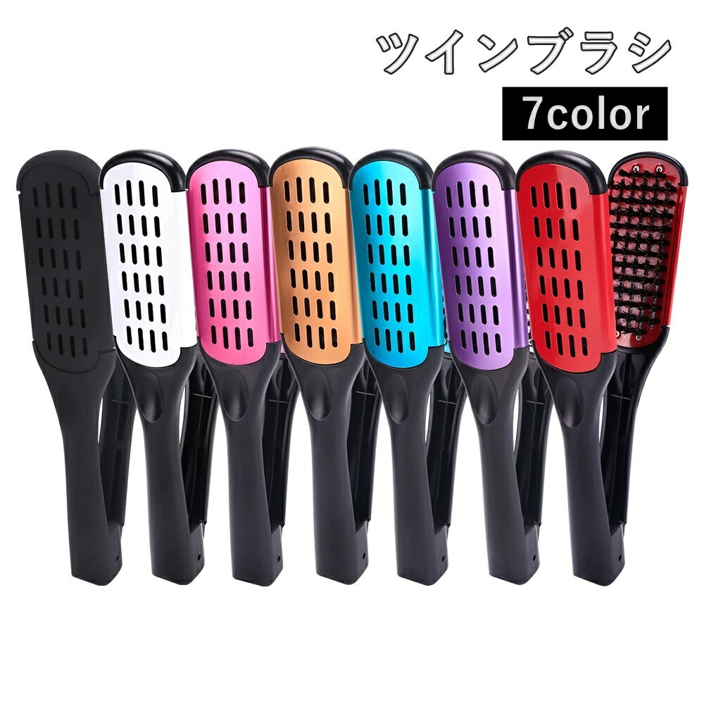 送料無料 ツインブラシ ヘアブラシ 両面ブラシ 挟む ストレートへア ヘアケア スタイリング 髪の毛 とかす 梳かす ヘアーブラシ
