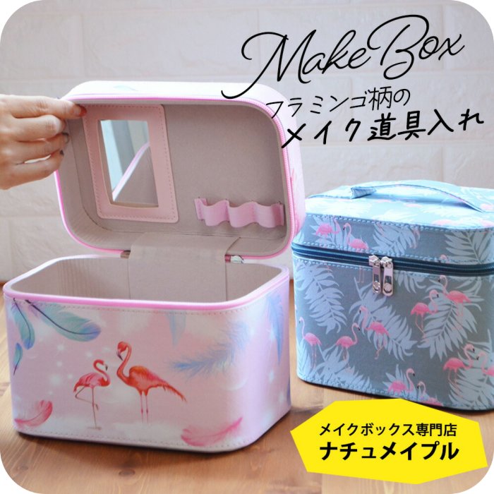 メイクボックス [ ナチュメイプル コンパクト フラミンゴシリーズ ] 鏡付き持ち運び コスメボックス 移動 収納 小物入れ おしゃれ かわいい バニティバッグ 収納ボックス 誕生日プレゼント 女友達 ギフト 女性 コスメ プレゼント 大人 女性