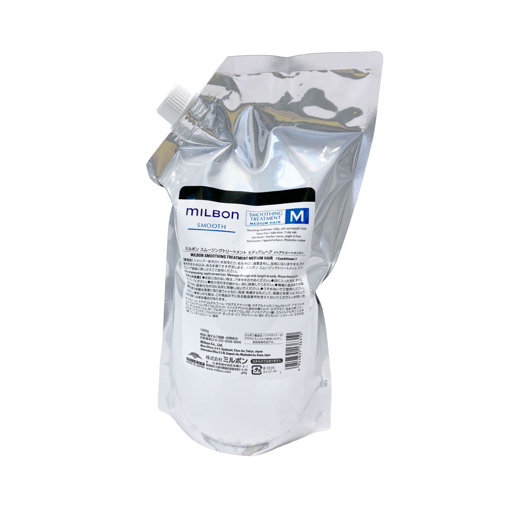 ミルボン スムージング トリートメント M [ミディアムヘア(普通毛向け)] 髪表面のキューティクルを整え、毛先までなめらかな髪へ導きます。 SMOOTH/スムース キューティクル表面をケアし、毛先までつややかで指通りのよいなめらかな髪ヘ 【特長】 毛先までつややかでなめらかな髪へ導くスムージングテクノロジー 疑似キューティクルで毛髪表面を包み込み、毛先までツヤやかでなめらかな髪へと導きます。 【香り】 さわやかな風に揺れる、匂いたつ花のような“Floral Breeze”の香り。 [ミュゲ(スズラン)&ジャスミン] ◆ 商品名称:スムージング トリートメント M ミディアムヘア ◆ ブランド:グローバルミルボン ◆ メーカー:ミルボン ◆ 区分:化粧品 ◆ 内容量:1000g ◆ JAN:4954835136310 ◆ 製造国:日本製 ◆ 成分:水、セタノール、ステアリルアルコール他 ※ 本商品ラベルに記載の使用上の注意をよくお読みいただき、用法容量を守って正しくご使用ください。 ※ 写真撮影の照明や、画像処理の加減により実物の色味と若干異なる場合もございます。あらかじめご了承の上ご購入下さい。 ◇ 注意事項 ◇ ★ ご利用のモニターによって、実物と異なる色に表示される場合がございます。 ★ 製造時期によりデザインや仕様に若干の変更がある場合がございます。ご了承ください。 ※ 領収書及び納品書発行について 出荷完了メール内に領収書をダウンロードするURLをお送りしています。お客様にてダウンロードをお願いします。 ※ ラッピング対応しておりませんので、ご了承ください。 ※ 商品取り扱いご注意 メーカーの予告なくパッケージや仕様が多少変更される場合があります。 予めご了承ください。 在庫切れや欠品の際は、ご注文頂いて14-30日程度で入荷となります。 ※入荷未定、メーカー完売の際はご容赦ください。その際には当店都合によるご注文キャンセルとさせていただきます。 ※ 加算オプションご選択 システムの都合上、ご注文時に金額は反映されません。 当店からお送りするサンクスメールにて訂正済みの金額をお知らせ致します。