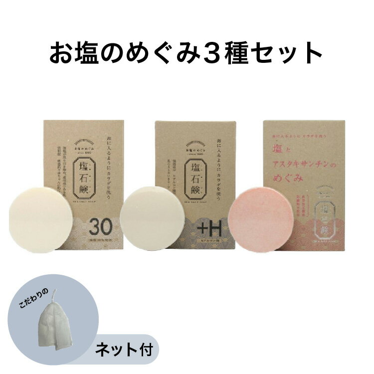 [お塩の恵み3種セット]洗顔石鹸 無添加 メンズ 洗顔石鹸 男性 パラシュート型泡立てネット付 オーガニック 毛穴ケア 固形 保湿 ニキビ 敏感肌 乾燥肌 低刺激 無香料 固形洗顔せっけん 日本製 送料無料 アスタキサンチンのめぐみ ヒアルロン酸 海塩 ツルツル 塩石鹸 ギフト