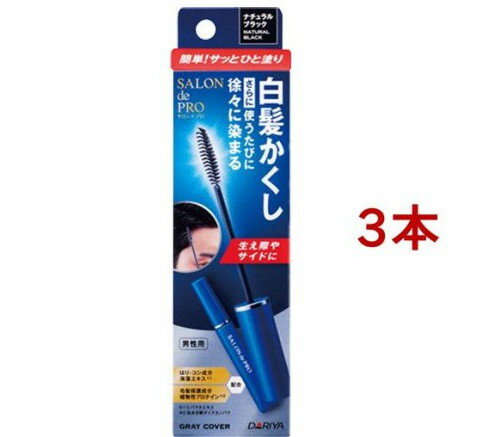 化粧品>ヘアケア>白髪染め>白髪かくし>サロンドプロ 白髪かくしカラー ナチュラルブラック (15ml*3本セット)商品区分:化粧品【サロンドプロ 白髪かくしカラー ナチュラルブラックの商品詳細】●簡単!サッと塗るだけで、気になる白髪をかくす●使うたびに徐々に白髪が染まる。通常2 4回のご使用で白髪が目立ちにくくなります。●素早く乾いて、手や肌を汚しにくい●汗や水に強く、色が落ちにくいタイプ●髪や頭皮に負担が少ない処方。酸化剤や脱色剤を含んでいないため、髪や頭皮に負担が少ないです。●ごわつかず自然な仕上がり【使用方法】(1)キャップを閉めたまま容器を軽く振ります。(2)容器を立てたまま、キャップをゆるめ、ブラシ部分をまっすぐにゆっくりと引き抜きます。(3)白髪の気になる部分に適量塗布します。・まつ毛や眉毛など、頭髪以外の部位に使用しないでください。・キャップを開けたまま、横にしたり逆さにしたりすると中味がこぼれますのでご注意ください。・ご使用後はしっかりキャップを閉めてください。【成分】水、エタノール、ベンジルアルコール、乳酸、ポリクオタニウム-55、加水分解ダイズタンパク、ヒバマタエキス、ポリクオタニウム-10、BG、(+/-)赤227、赤504、黄403(1)、黄5、黒401、橙205、紫401【注意事項】・お肌や頭皮に異常が生じていないかよく注意して使用してください。お肌や頭皮に合わないときは、ご使用をおやめください。・目に入らないようご注意ください。・乳幼児の手の届かないところに保管してください。・極端に高温又は低温の場所、直射日光の当たる場所には保管しないでください。【原産国】日本【ブランド】サロンドプロ【発売元、製造元、輸入元又は販売元】ダリヤ※説明文は単品の内容です。リニューアルに伴い、パッケージ・内容等予告なく変更する場合がございます。予めご了承ください。(SALON de PRO)・単品JAN:4904651182305ダリヤ460-0002 愛知県名古屋市中区丸の内3-5-240120-57-2152[ヘアカラー/ブランド:サロンドプロ/] ・広告文責(株式会社ビッグフィールド ・072-997-4317) ※ご注文手配後の変更キャンセルはお受けできません※仕入れ先からの直送品の為、お客様ご都合の返品・交換を賜ことが出来ません。誠に勝手ではございますが、何卒、ご理解ご了承のほどお願い申し上げます。