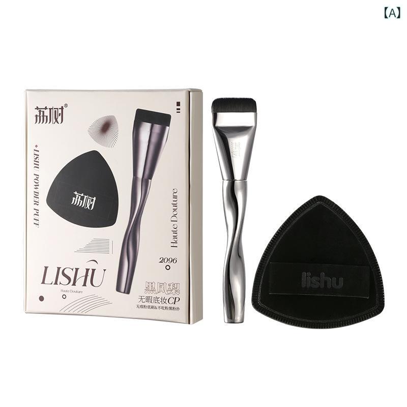 化粧ブラシ ファンデーションブラシ フェイスブラシ Pohl? ブラック 梨型 パフ メイクアップブラシ 薄付き 無痕