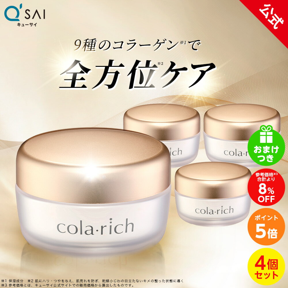 広告文責 キューサイ株式会社 0120-09-5555 メーカー TOA株式会社 区分 化粧品 製造国 日本 ※転売目的の購入、および転売することは禁止させていただいております。 ※販売目的(転売等)でご購入のお客様、及びご返品の多いお客様や配送に支障をきたすお客様には、弊社の判断によりご注文をお断りさせていただく場合があります。 公式キューサイ楽天市場店は様々な用途にご利用頂いております。 季節の贈り物お正月 御正月 御年賀 お年賀 御年始 バレンタインデー ホワイトデー お花見 母の日 父の日 初盆 お盆 御中元 お中元 お彼岸 残暑御見舞 残暑見舞い 敬老の日 寒中お見舞 クリスマス クリスマスプレゼント お歳暮 御歳暮 春夏秋冬 その他季節の ギフト プレゼント こんな方にお父さん お母さん 兄弟 姉妹 子供 おばあちゃん おじいちゃん 奥さん 彼女 旦那さん 彼氏 先生 職場 先輩 後輩 同僚 日常の贈り物誕生日 バースデー お祝い 内祝 結婚祝 プレゼント ギフト内容量・配合成分 ●内容量:55g(約1カ月分) ×4個セット ●配合成分:水、温泉水、BG、PPG-9ジグリセリル、グリセリン、ヒドロキシエチルウレア、ペンチレングリコール、加水分解コラーゲン、水溶性コラーゲン、サクシノイルアテロコラーゲン、水溶性コラーゲンクロスポリマー、加水分解コラーゲンPGプロピルメチルシランジオール、シア脂、アルガニアスピノサ核油、アフリカマンゴノキ核脂、クズ根エキス、シャクヤク根エキス、クロレラエキス、トリフルオロ酢酸テトラデシルアミノブチロイルバリルアミノ酪酸ウレア、セイヨウトチノキ種子エキス、ビルベリー葉エキス、加水分解エラスチン、ナイアシンアミド、カラスムギ穀粒エキス、ヒメフウロエキス、アロエベラ葉エキス、スクワラン、アセチルヒアルロン酸Na、加水分解ヒアルロン酸アルキル(C12-13)グリセリル、水溶性プロテオグリカン、テトラヘキシルデカン酸アスコルビル、グルコシルヘスペリジン、シゾサッカロミセスポンベエキス、アルテロモナス発酵エキス、ワサビノキ種子エキス、セイヨウハッカ葉エキス、アルニカ花エキス、メリッサ葉エキス、シリカ、ベヘニルアルコール、アルギン酸Na、クエン酸、クエン酸Na、ポリ-ε-リシン、ポリグルタミン酸、ヒアルロン酸Na、エチルセルロース、結晶セルロース、セルロース、ヒドロキシプロピルメチルセルロース、酸化鉄、マンニトール、ジグリセリン、グリセレス-26、PEG/PPG/ポリブチレングリコール-8/5/3グリセリン、エチルヘキシルグリセリン、オクチルドデカノール、水添ココグリセリル、(アクリレーツ/アクリル酸アルキル(C10-30))クロスポリマー、カルボマー、ステアロキシPGヒドロキシエチルセルローススルホン酸Na、塩化Mg(メタクリル酸エチルベタイン/アクリレーツ)コポリマー、エタノール、水酸化K、フェノキシエタノール 使用方法 適量(直径1.5cmくらい)を手に取り、顔全体にやさしくなじませてください。 使用上の注意 ・お肌に異常が生じていないかよく注意して使用してください。 ・化粧品がお肌に合わないとき即ち次のような場合には、使用を中止してください。そのまま化粧品類の使用を続けますと、症状を悪化させることがありますので、皮膚科専門医等にご相談されることをおすすめします。 (1)使用中、赤味、はれ、かゆみ、刺激、色抜け(白斑等)や黒ずみ等の異常があらわれた場合 (2)使用したお肌に、直射日光があたって上記のような異常があらわれた場合 ・傷やはれもの、しっしん等、異常のある部位にはお使いにならないでください。 ・極端に高温又は低温の場所、直射日光のあたる場所には保管しないでください。 ・乳幼児の手の届かない場所に保管してください。 ・使用後はキャップをしっかりと閉めてください。 ・目に入った場合は、こすらずにすぐに水またはぬるま湯で充分に洗い流してください。 ※ アレルギーテスト済み(全ての方にアレルギーが起きないというわけではありません。) ※ パッケージは予告なく変更になる場合がございます。 広告文責 キューサイ株式会社 0120-09-5555 メーカー TOA株式会社 区分 化粧品 製造国 日本 ※転売目的の購入、および転売することは禁止させていただいております。 ※販売目的(転売等)でご購入のお客様、及びご返品の多いお客様や配送に支障をきたすお客様には、弊社の判断によりご注文をお断りさせていただく場合があります。 公式キューサイ楽天市場店は様々な用途にご利用頂いております。 季節の贈り物お正月 御正月 御年賀 お年賀 御年始 バレンタインデー ホワイトデー お花見 母の日 父の日 初盆 お盆 御中元 お中元 お彼岸 残暑御見舞 残暑見舞い 敬老の日 寒中お見舞 クリスマス クリスマスプレゼント お歳暮 御歳暮 春夏秋冬 その他季節の ギフト プレゼント こんな方にお父さん お母さん 兄弟 姉妹 子供 おばあちゃん おじいちゃん 奥さん 彼女 旦那さん 彼氏 先生 職場 先輩 後輩 同僚 日常の贈り物誕生日 バースデー お祝い 内祝 結婚祝 プ