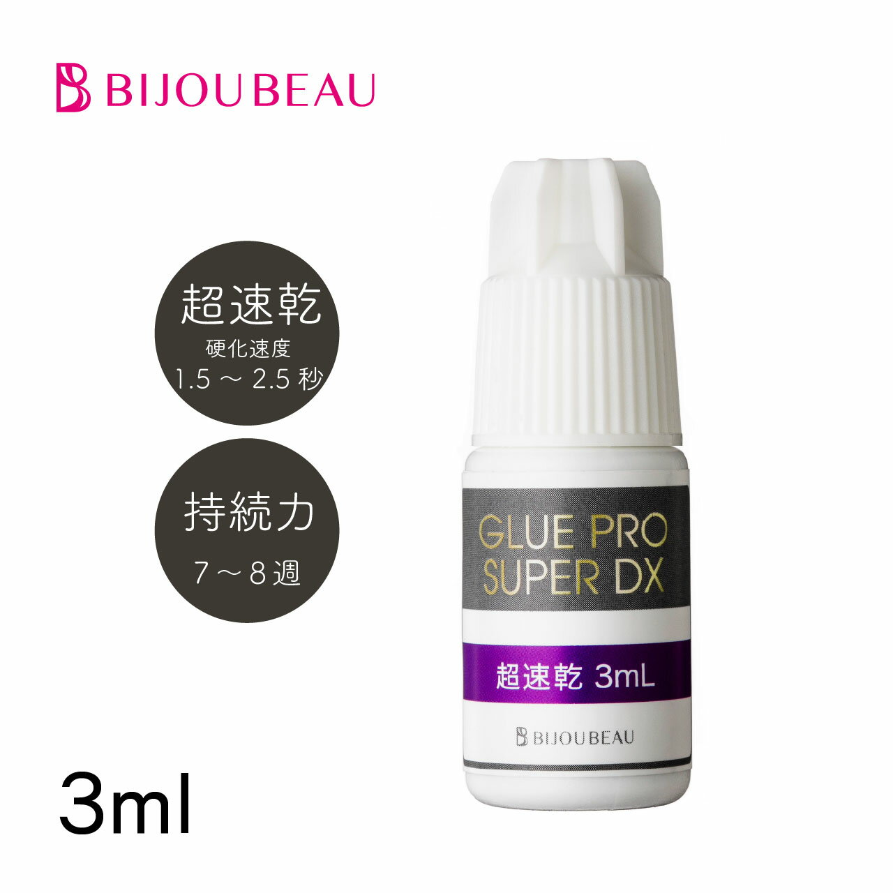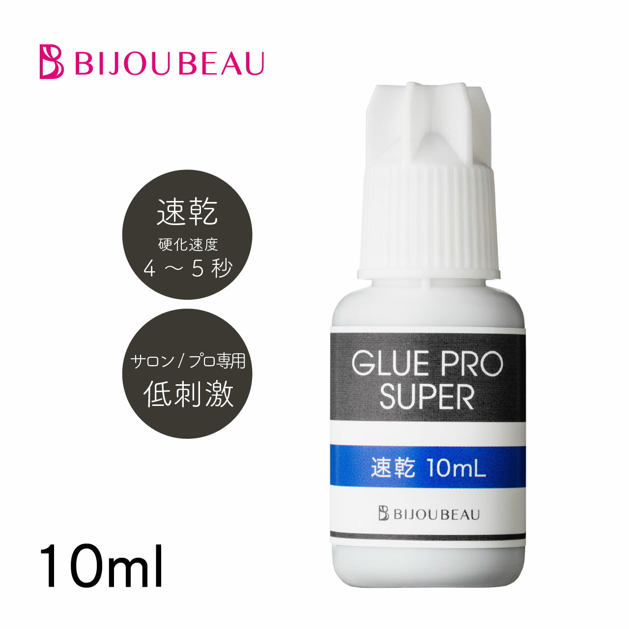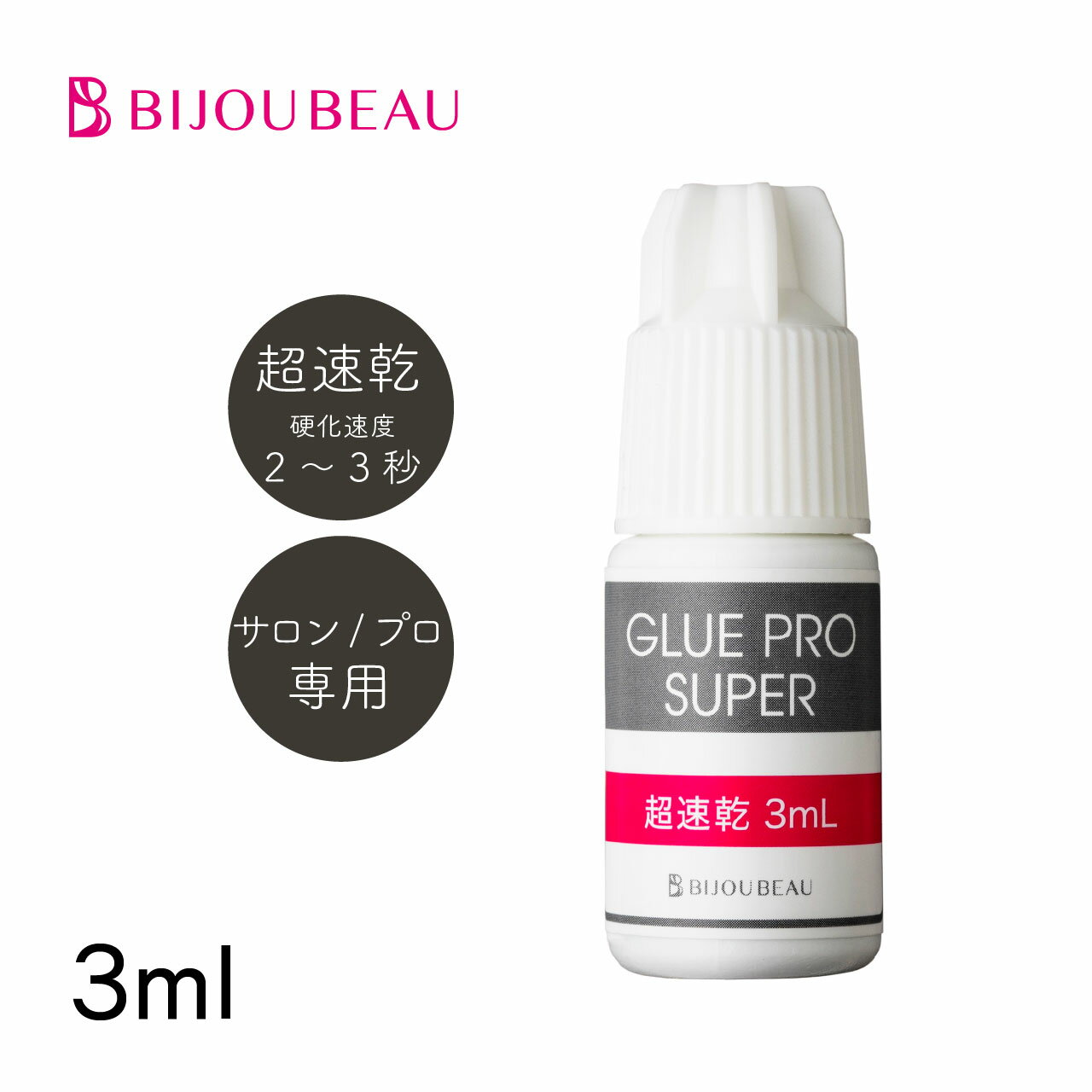 【注意】 ・プロとセルフでは施術方法の違いから、グルーの相性がございます。 プロ:全ライン使用可能 セルフ:無刺激のみ。超速乾と速乾では硬化速度の差と揮発成分のため目に沁みます。 セルフの方はプロ用グルーはご使用しないようお願いいたします。 ・不特定多数の方にまつげエクステンション施術を行う場合、保健所への美容所登録が必要です。 ・施術を行う人は美容師免許を保持する必要があります。 ・BIJOUBEAUの商品の多くは「プロ用商品」です。 プロとして技術的に問題があると判断される方、また衛生管理・施術リスクをご理解いただけない方は、本品の使用はご遠慮ください。 ・初めてご使用する場合は、必ず取扱い説明書を読んでお使い下さい。 誤った使用方法やその他原因によるトラブルが発生した場合、弊社での責任は負いかねますので、予めご了承くださいますよう、お願い申し上げます。 ・一次硬化:超速乾、速乾は約15分、無刺激は約30〜60分の間は、絶対に触らないようにしてください。 また、入浴や洗顔は仮硬化(約4〜5時間)以降にお願い致します。 完璧に保ちたい方は、完全硬化(約24時間)後にお願い致します。 ・ご購入前に必ずこちらをご確認ください。