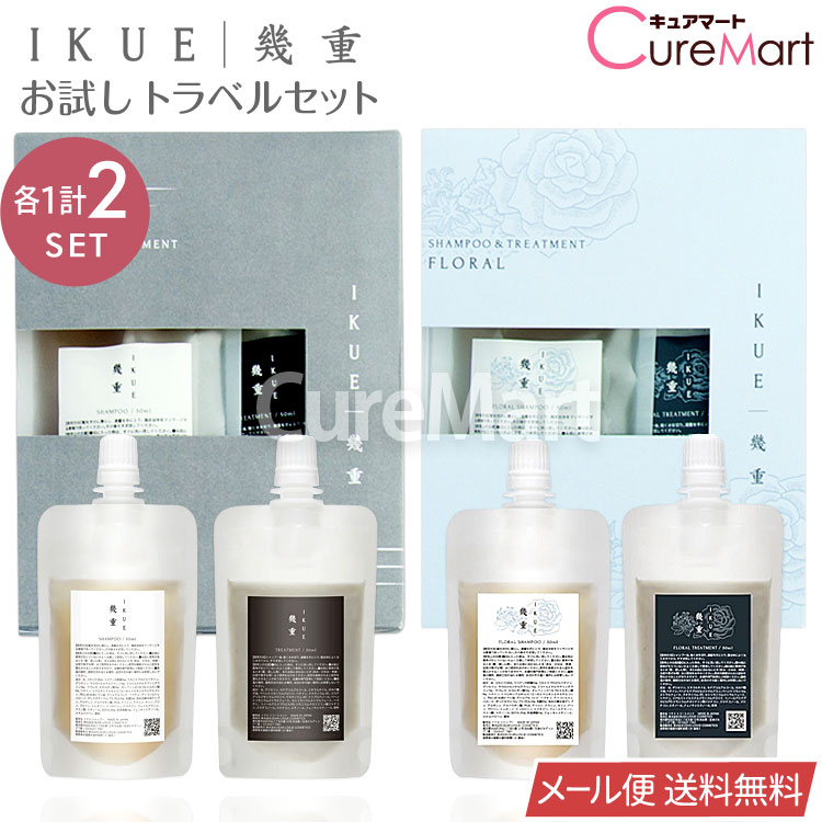 IKUE 幾重 トラベルセット (シャンプー&トリートメント各50mL)◆2個セット (ホワイトリリー、フルーティフローラル各1個) 日本製【メール便 送料無料】お試しセット DEARLOGUECOSMETICS イクエ シャンプー ノンシリコンシャンプー ヘマチン サロン専売品 補修 うねり髪